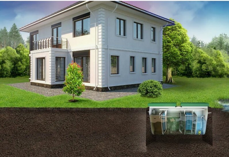 Это самый эффективный и популярный вариант для домов с постоянным проживанием. Такие системы обеспечивают очистку стоков до 95-98%, воду можно сбрасывать прямо в грунт или использовать для полива . Они компактны, не требуют обширных полей фильтрации и практически не издают запаха.