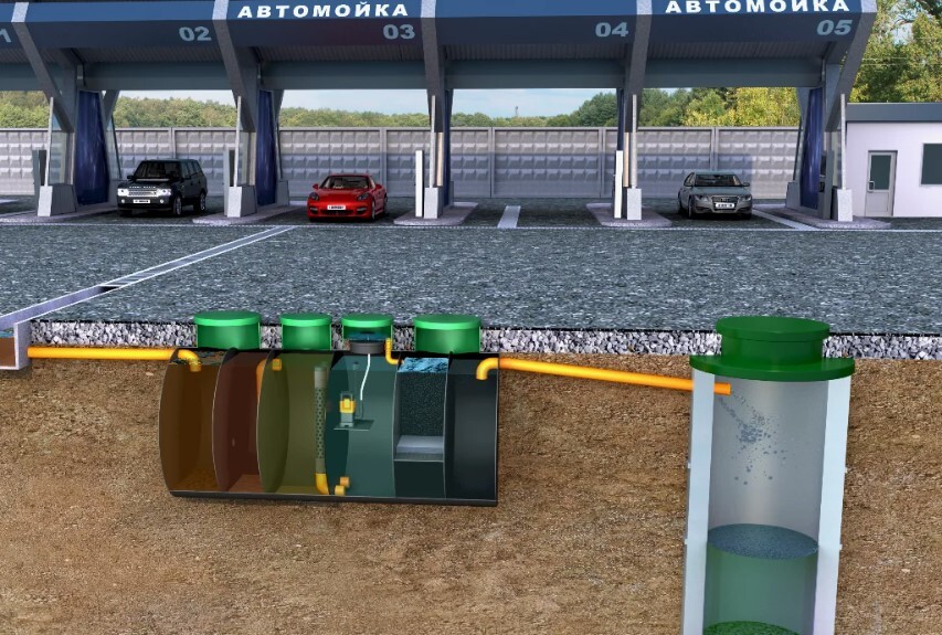 Многоступенчатая система: как это работаетПромышленная очистка — это не один бак, а целая технологическая линия. Рассмотрим типовую схему для автомойки .